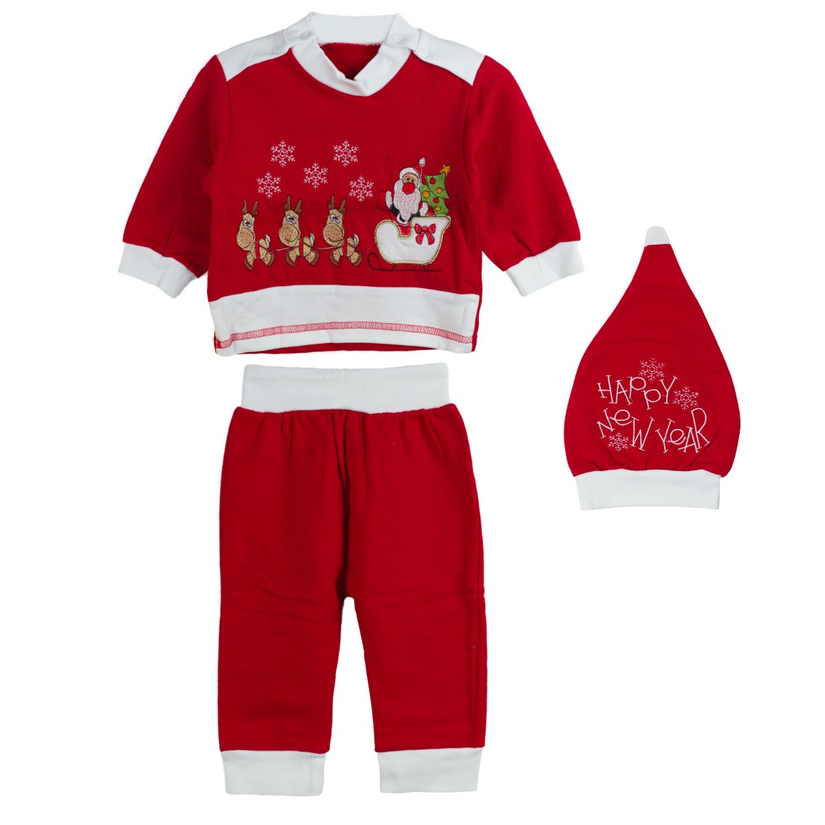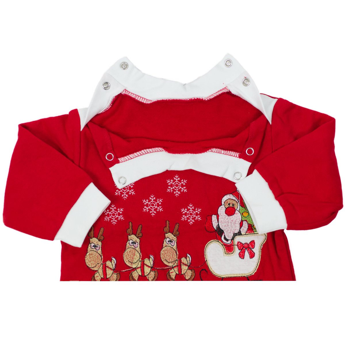 Captured in a professional Toronto studio, this photoshoot presents сhristmas baby set styled in classic red and white tones. The composition emphasizes the textures, seasonal embroidery, and balanced color contrast that convey a cheerful holiday atmosphere. Soft lighting and a neutral background enhance the overall warmth and clarity, reflecting the refined approach typical for product photography Toronto and ideal for catalog or campaign visuals.