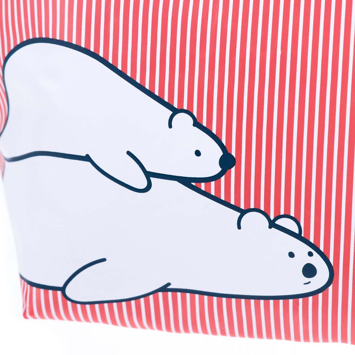 A bright product photography Toronto session featuring a playful striped tote bag with polar bear illustrations. The shot captures the bag’s clean lines, fabric texture, and color contrast under soft studio lighting. The composition highlights the fun, modern design and practical shape, ideal for lifestyle branding, online stores, and catalog presentations.